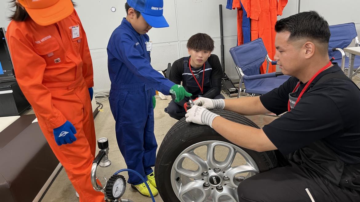 タイヤって重たいの?クルマの下はどうなっているの?など、の疑問を実際にBMW・MINIを使用して、メカニックに教わりながらクルマに触れることができる、体験イベントです。