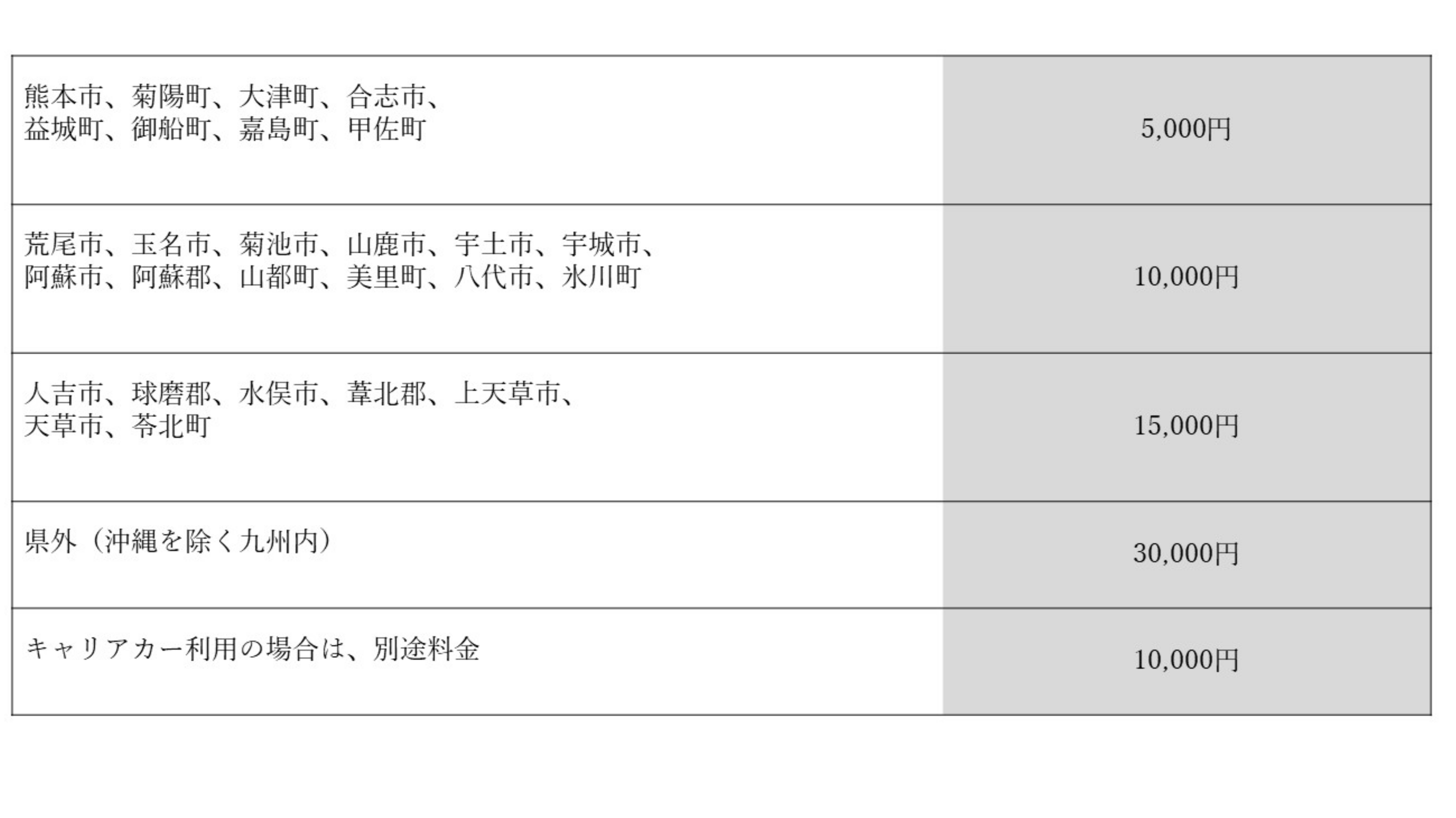 *上記価格は1往復の価格です。お引取り・納車両方の場合は2往復分となります。